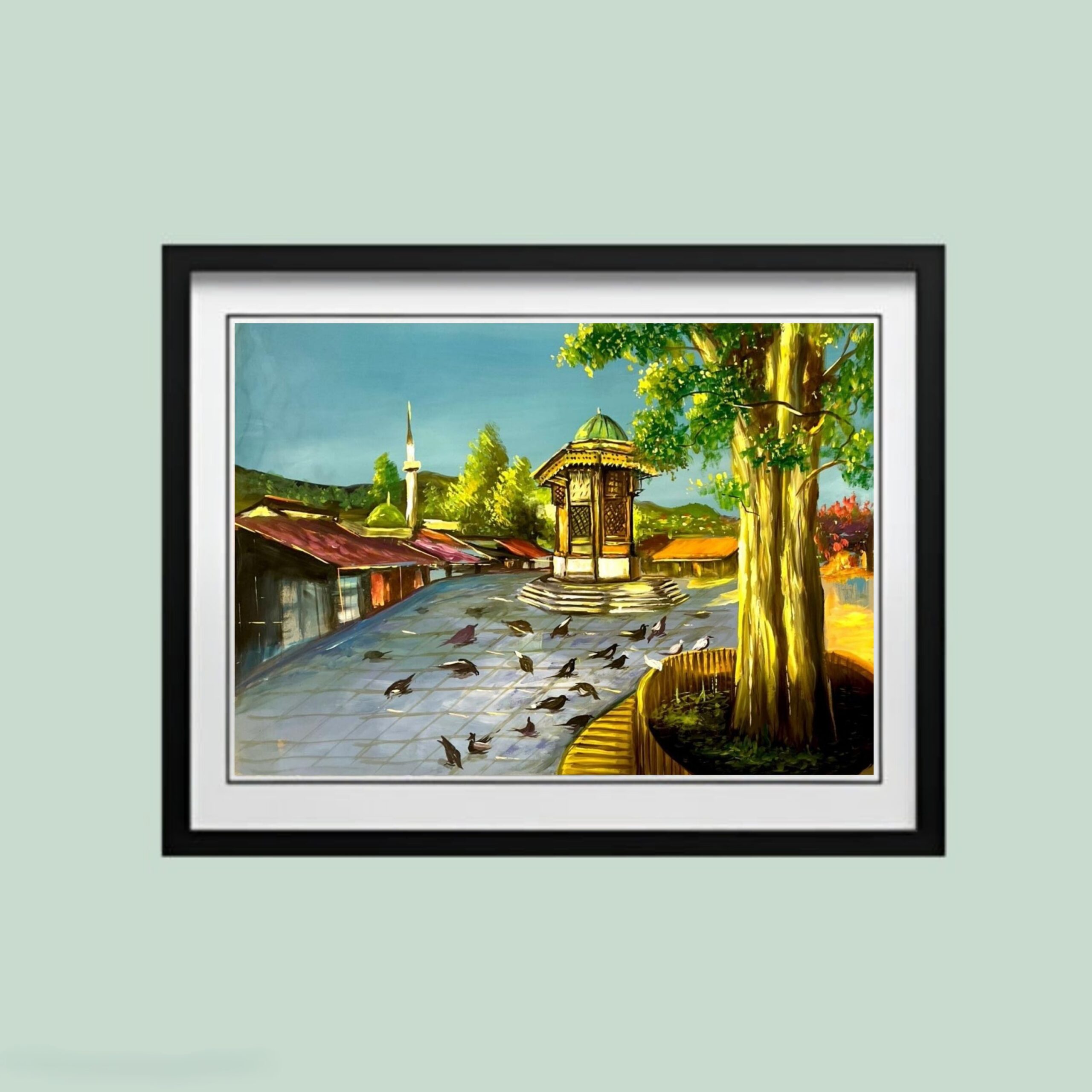 “Discover the charm of Sebilj through our exquisite paintings at Calla Art. Each piece captures the iconic beauty of Sarajevo’s famous fountain, blending vibrant colors and intricate details to bring a piece of Bosnian heritage into your home. Perfect for art lovers and cultural enthusiasts alike.